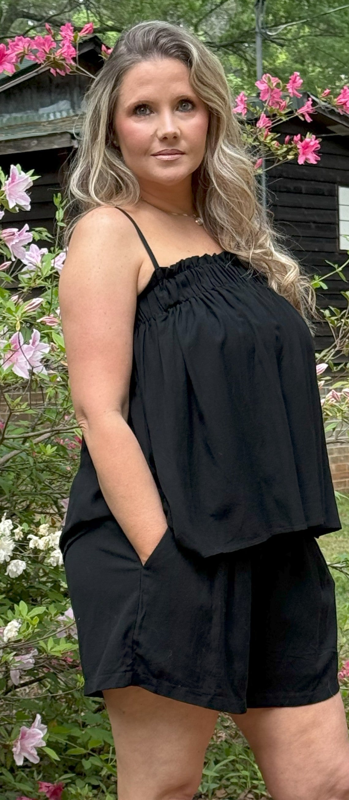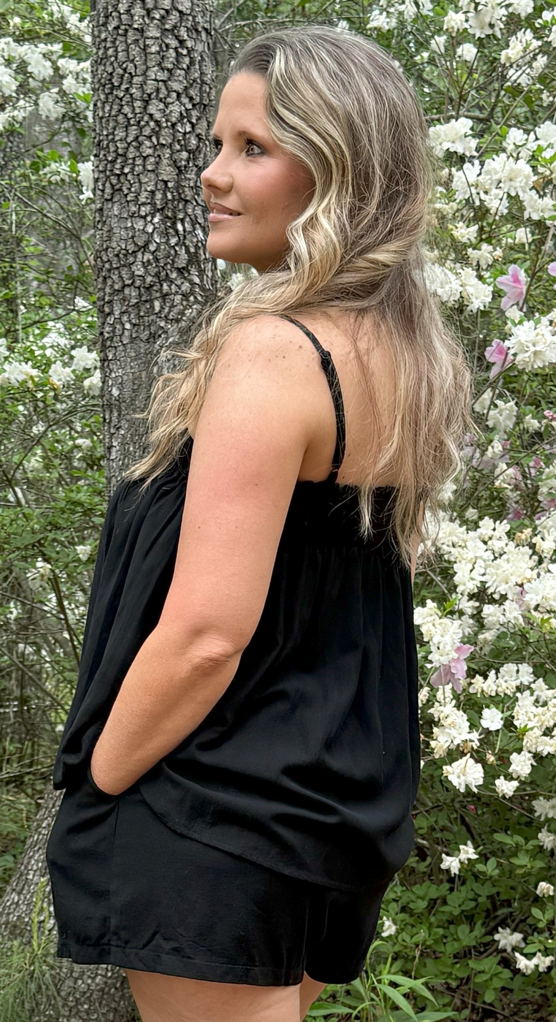 - SLEEVELESS BABYDOLL TOP AND SHORTS SET SIDE POCKETS
